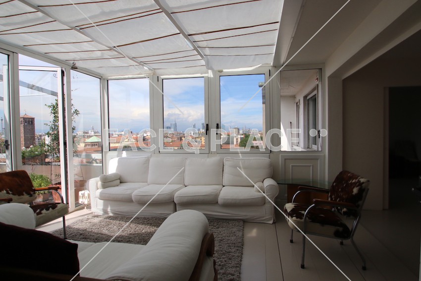 Typology: House Area: Milano Location per: Foto - Video Descrizione: Modern house, terrace overlooking the roofs of milano, windowed living room. Style: Modern Tag: Glass windowModern decorPanoramic ViewTerrace with views Share: 0 Share on Tumblr IT