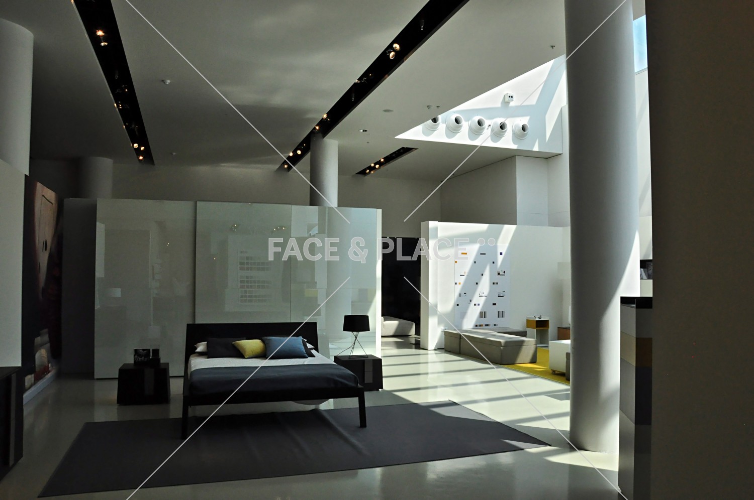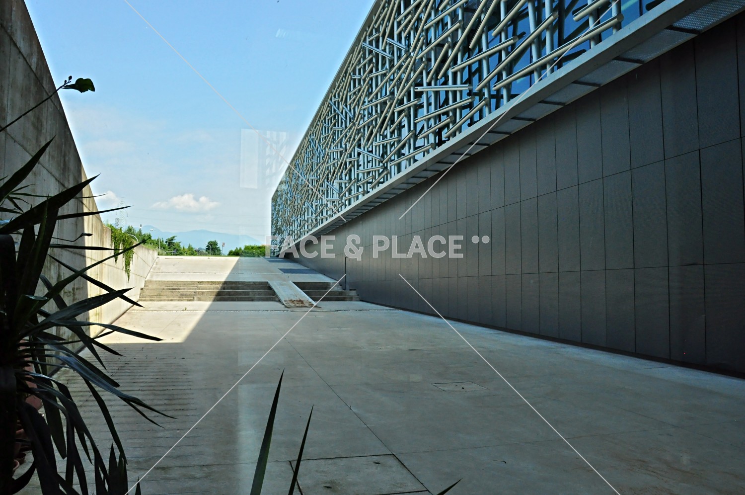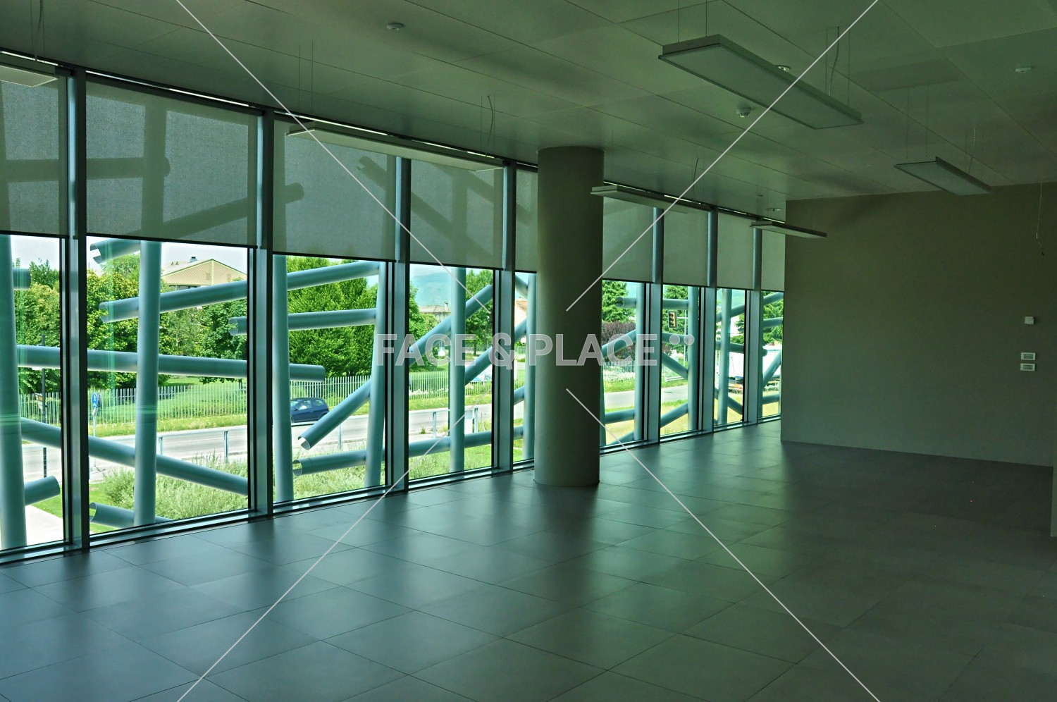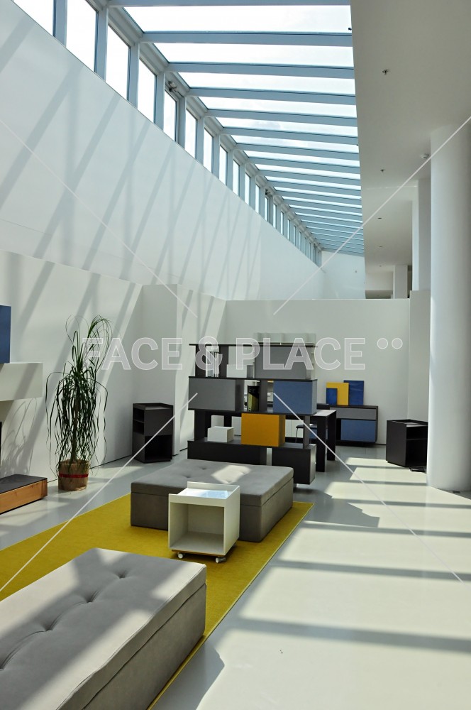 Edificio industriale dall'architettura contemporanea, prevalentemente in vetro e acciaio. Ampio showroom con doppio ingresso, corpo centrale occupato dalla reception e dallo scalone, corpi laterali occupati dagli uffici.