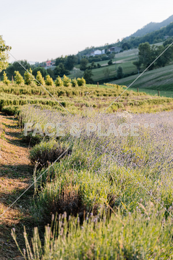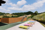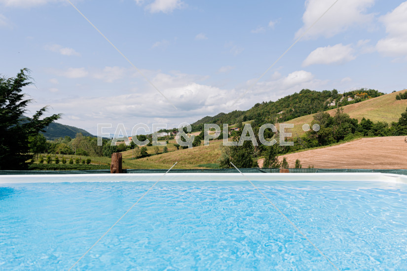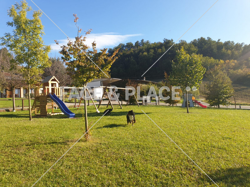 All’esterno, un ampio portico affacciato sul giardino regala una vista meravigliosa sul parco giochi, sui campi di lavanda e sulle corone boschive dei colli circostanti.