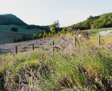 Nella parte finale della tenuta c’è lo spazio dedicato agli animali. A fare da cornice: orti, frutteti e campi di lavanda e rosmarino.