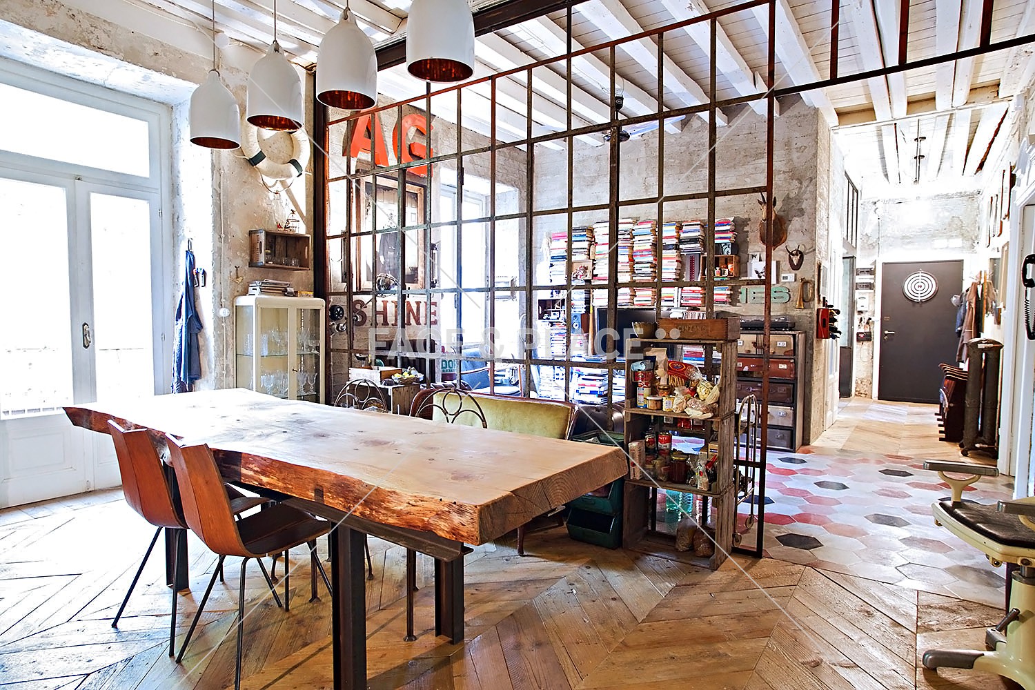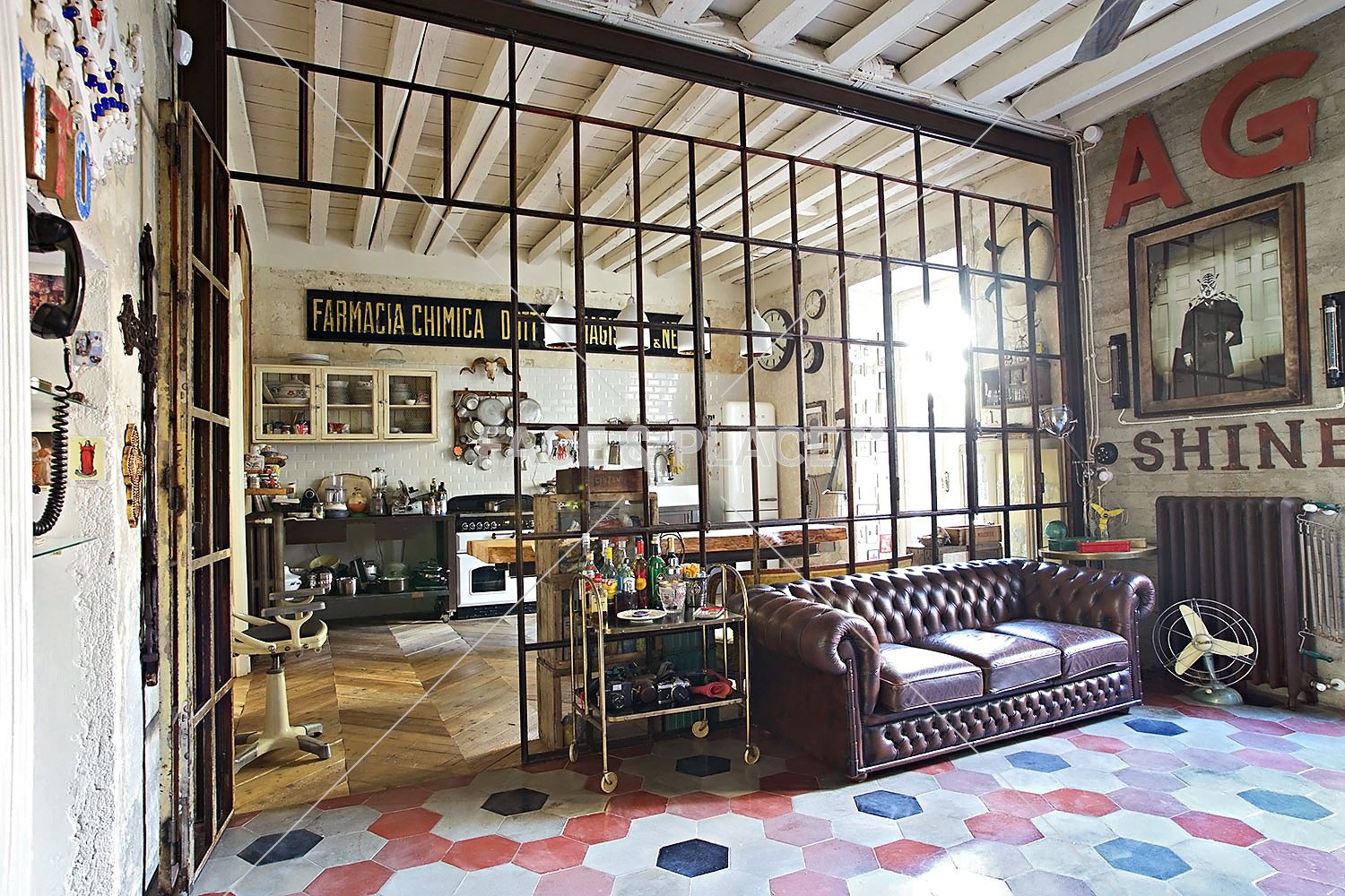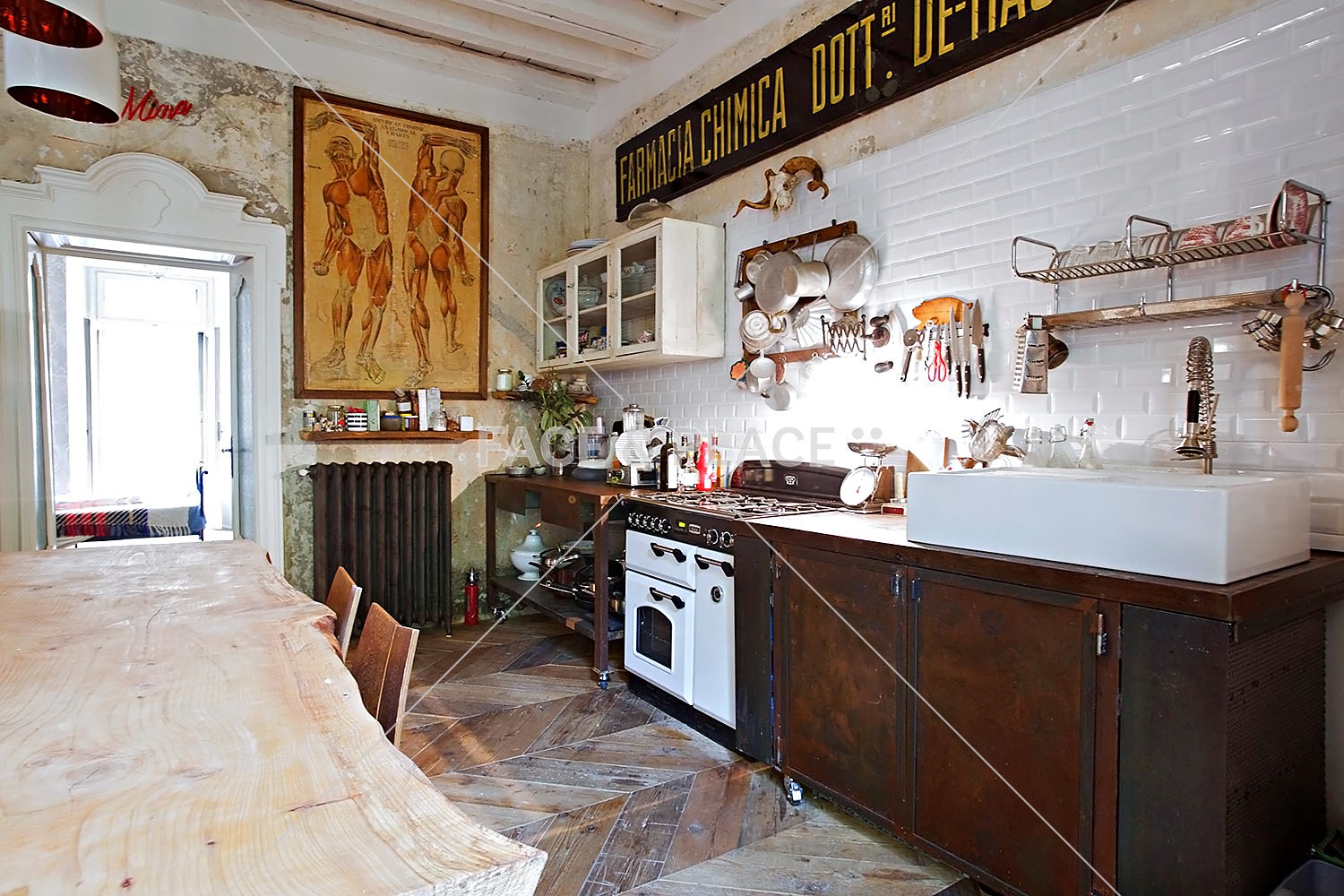 This house is the result of the love of the owners for the vintage. Nothing is left to chance .. the owners have recovered the pieces during the years from house to house. Many the recovered materials, a parquet comes from scaffolding boards, flooring found in old abandoned houses, a stained glass came from an old Italian factory. Everything has been chosen with great care and the result is a rare and unique home.