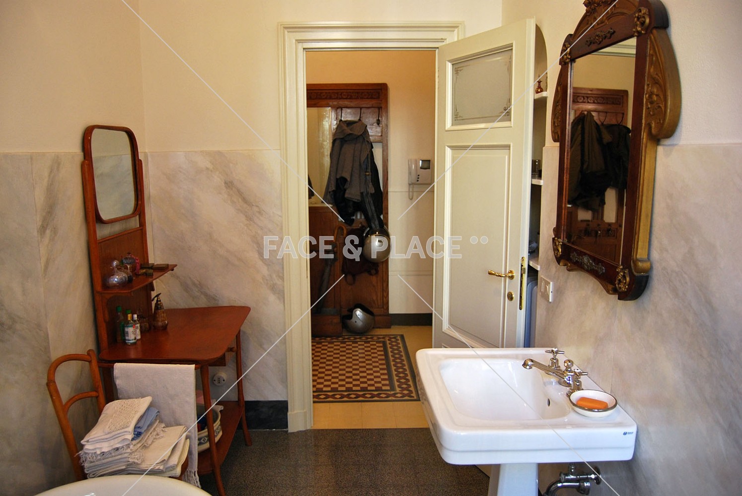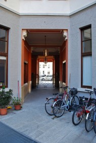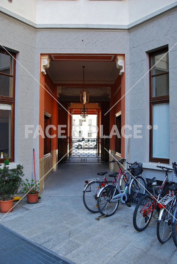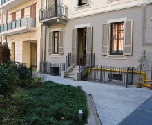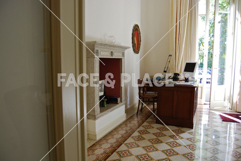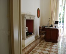 Studio borghese situato in palazzo storico del centro città, entrata con piccolo giardino, infissi d'epoca, caminetto e pavimenti piastrellati con disegni particolari.