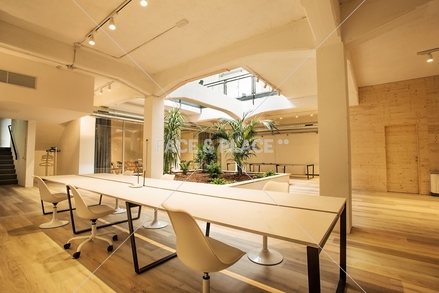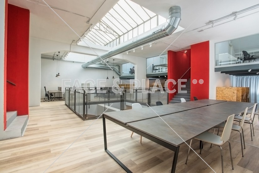 New coworking space from a renovated factory, divided into two floors, one of them used as space for events with some conference rooms. Modern and very bright location.
