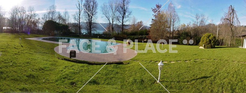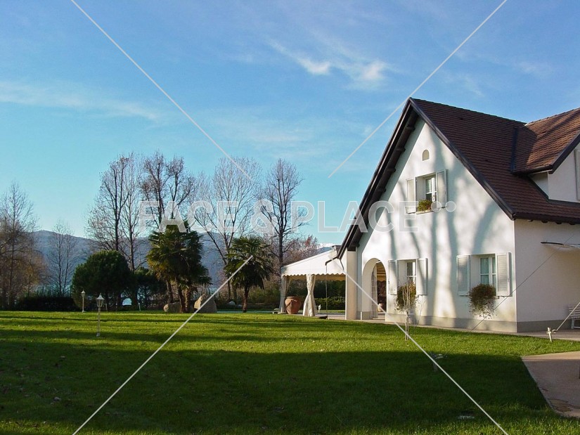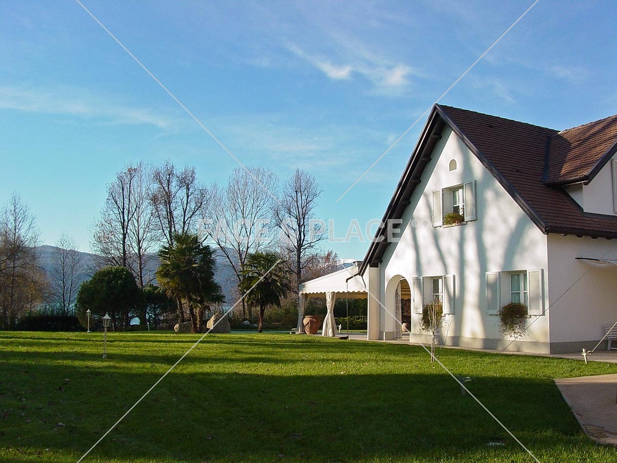 Questa villa che ricorda nell'architettura le villette americane sorge sulle rive del Lago. Circondata da un meraviglioso parco con piante secolari, piscina e accesso diretto al lago, rappresenta un ambiente raffinato e accogliente.