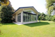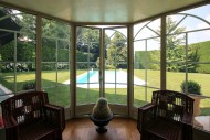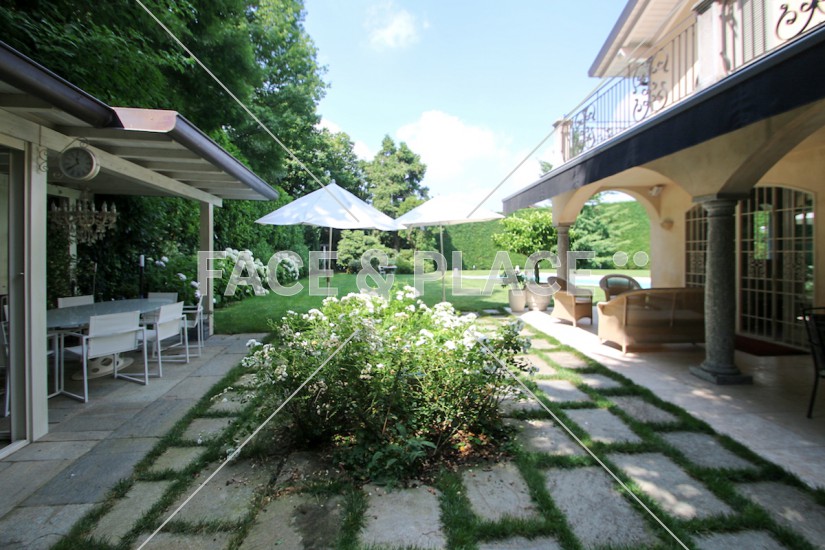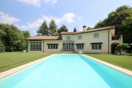 Parco piantumato con piscina e zona barbecue.