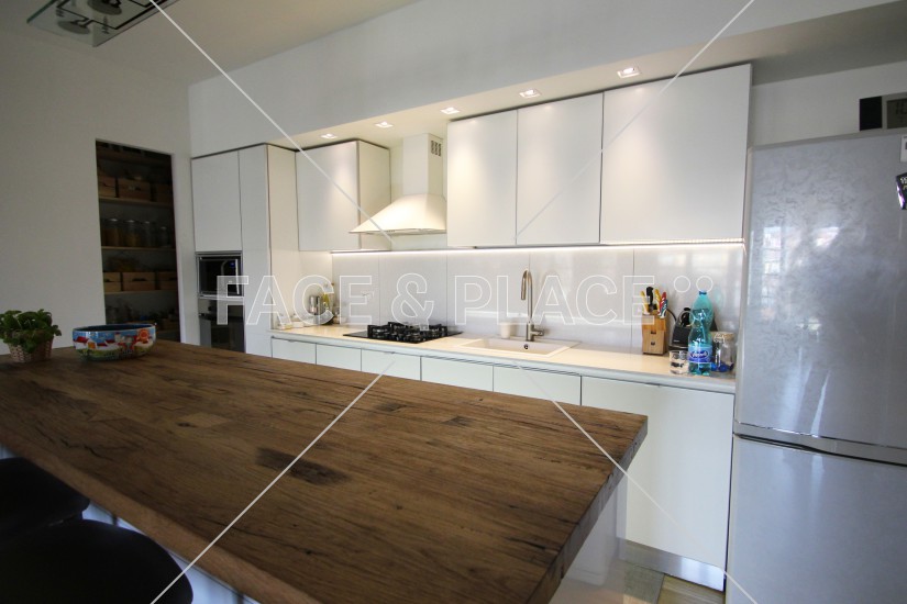 Una casa moderna molto luminosa, con grande zona cucina e living che si faccia sul giardino. Al primo piano da tutti gli ambienti si accede su un grande terrazzo che si affaccia a sua volta sul giardino.