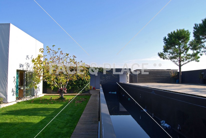 Una casa da rivista di architettura contemporanea. Un cubo posato su un giardino con finestre che creano un dialogo interno esterno. Arredamenti originali su misura. Incredibile vista sul paesaggio urbano.