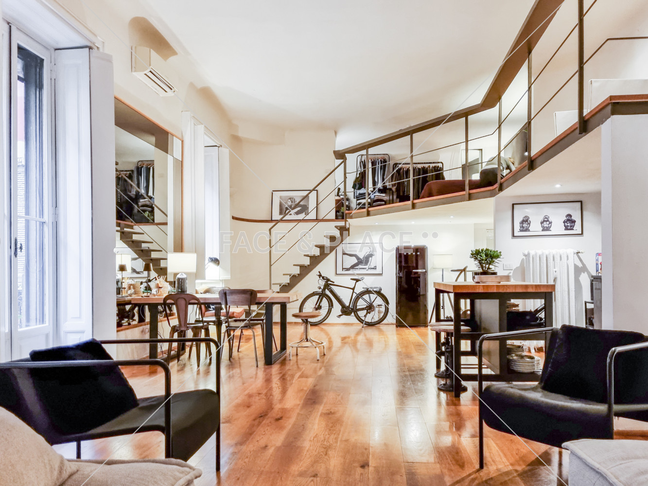 Tipologia: Casa - Loft Area: Milano ZTL: No Location per: Foto - Video Dimensione: 140mq Piano: 0 +1 + Soppalco Ascensore: No KW: 3 Descrizione: Loft con balcone e doppia altezza. Scala a chiocciola per raggiungere il salotto. Stile: Moderno Tag: Arredamento modernoCaminoCucina a vistaLibreriaParquetScala internaSpecchi Share: 0 Share on Tumblr