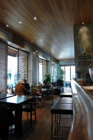 Bar dall'atmosfera accogliente, situato in centro città con ampie vetrate sulla strada. Comodi divanetti e poltrone in pelle, soffitto e pavimento in parquet.
