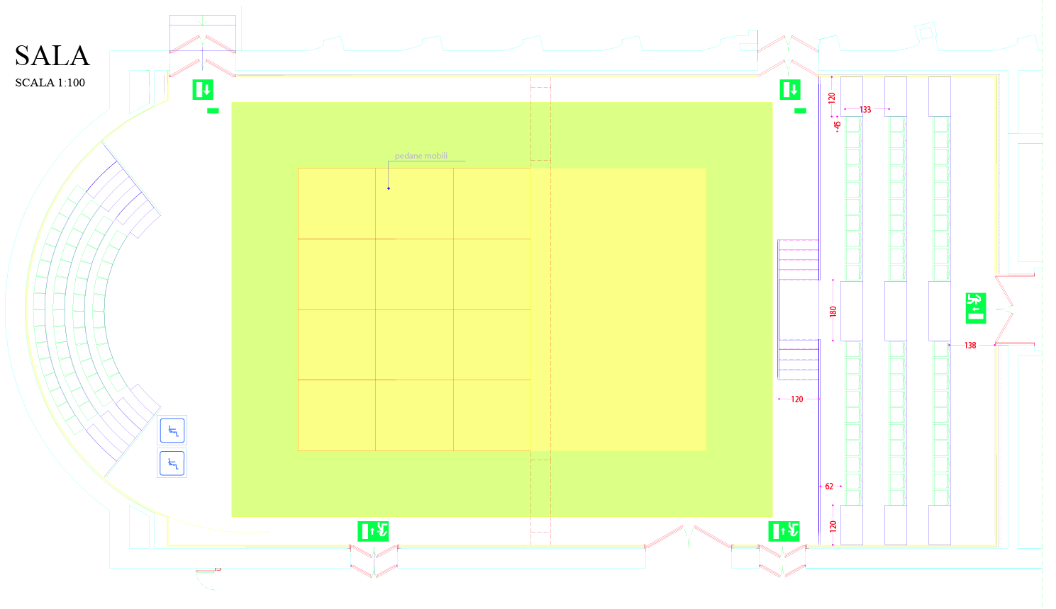 Garantisce alti standard qualitativi in quanto a isolamento e trattamento acustico degli ambienti, attrezzature dedicate alla registrazione, impianti tecnici ed allestimenti (sistemi di illuminazione, macchinari scenici e teatrali, elementi motorizzati per la variazione della risposta acustica, ecc.), equipaggiamenti ausiliari audio e video.