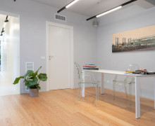 L'interno ha un arredamento in stile contemporaneo che crea l'ambiente adatto a meeting formali ma anche eventi conviviali. Una cucina a scomparsa e un ampio tavolo permettono di abbinare le riunioni con pause caffè e lunch, gli eventi con aperitivi e cene.