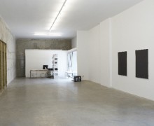 Galleria per esposizioni completamente neutra, pareti in cemento o bianche. Pavimento in cemento, illuminazione al neon.