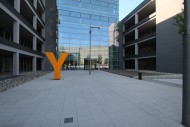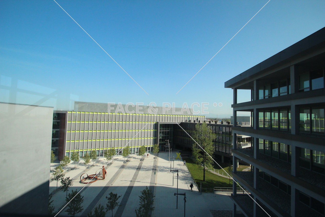 Moderno complesso di uffici nato da un progetto di riqualificazione sostenibile. Tre edifici principali in dialogo tra loro attraverso collegamenti trasperenti e permeabili, affacciati su una piazza pedonale.