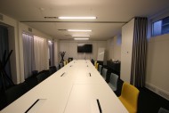Al piano interrato si trovano alcune sale riunioni modulabili. I piani superiori si trovano uffici arredati in stile moderno e di design, con zone open space, area relax e copy rooms.