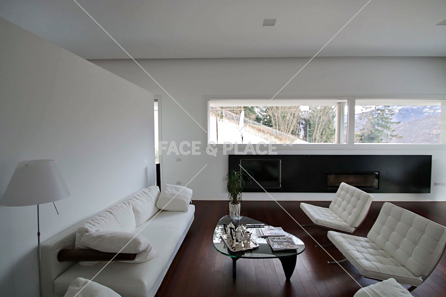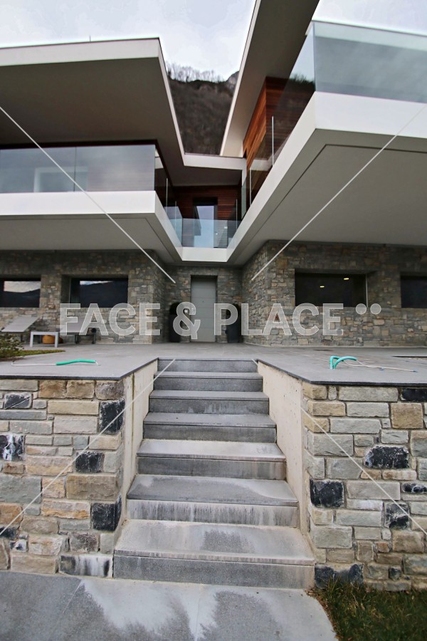 Nuovissima villa moderna dalle linee geometriche, molto adatta a shooting fotograici. La villa è composta da diversi blocchi ognuno con un loggiato a sbalzo che controlla l'entrata della luce e propone diverse angolazioni di vedute.
