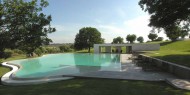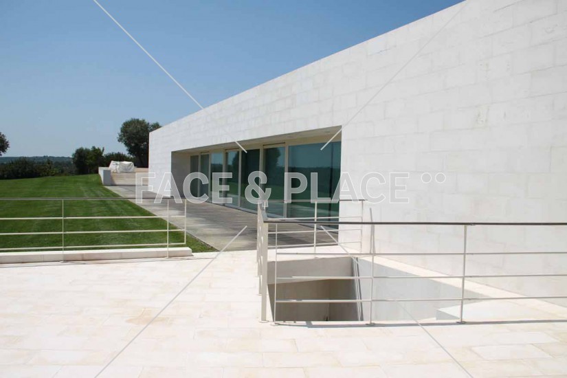Bellissima villa moderna con grande piscina esterna, immersa nel verde e circondata dagli ulivi. Caratterizzata da linee moderne e volumi geometrici, grandi pareti bianche si alternano a mura di pietra.