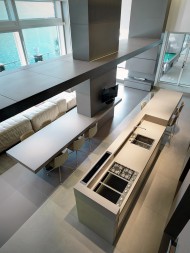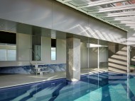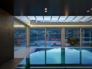Villa minimalista con ambienti di design che si affacciano su uno splendido panorama lacustre. All'interno della location oltre ad una sauna si trova una lussuosa piscina circondata da vetrate.