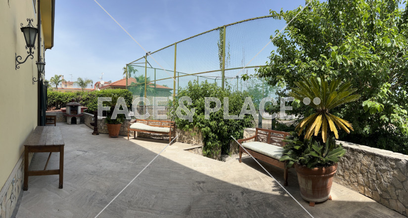 Villa unifamiliare su 3 livelli (interni complessivamente 750 mq suddivisi equamente sui livelli), con un ampio spazio esterno (più di 2000 mq ) che permette una totale indipendenza ed autonomia nel lavoro. Facilmente raggiungibile con auto e camion, ampio spazio per parcheggiare, per scaricare materiali e attrezzature e ampio spazio anche per deposito e gestione delle attrezzature e del materiale necessario per la produzione. Essendo in una via privata, non vi è rischio di creare ingorghi o altro con i camion. Casa arredata nei dettagli e con grande gusto come si vede da foto. All'interno, un'area biliardo, area camino, area barbecue, tutto attrezzato. All'esterno, oltre ad un ampio giardino con vari alberi di frutta e fiori, c'è un campo da calcetto e tennis, un orto coltivato e un forno a legna per la cottura delle pizze, il tutto circondato da ampio spazio verde che permette libertà ed indipendenza nello svolgimento della attività lavorativa. Ci sono due terrazzi a livello molto ampi. Esposizione multipla, numerose e ampie finestre permettono di avere un'ottima illuminazione durante tutte le ore del giorno. Le camere da letto e i bagni sono tutte stanze arredate nel dettaglio e con gusto. Ogni stanza ha il proprio balcone e ogni bagno la propria finestra. Pavimenti e ceramiche zona cucina e bagni sono tutti in cotto vietrese. A disposizione set di piatti e vassoi in cotto vietrese realizzati a mano ed in tinta con le ceramiche della cucina. Porte delle stanze e dei bagni decorate a mano con piccoli dipinti bucolici molto suggestivi. C'è uno spogliatoio sportivo con 6 vani doccia.